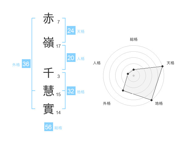 赤嶺 千慧實さんの天格は24画の5点!