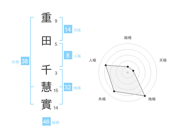 重田 千慧實さんの外格は38画の4点!