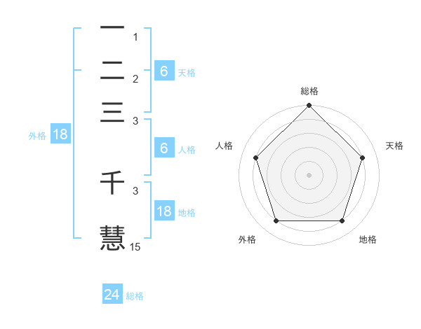 一二三 千慧さんを姓名の画数から五運を鑑定