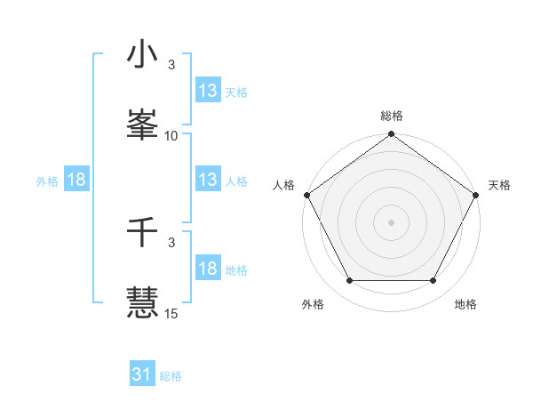 小峯 千慧さんの天格は13画の5点!