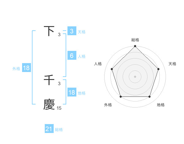 下 千慶さんの総格は21画の5点!