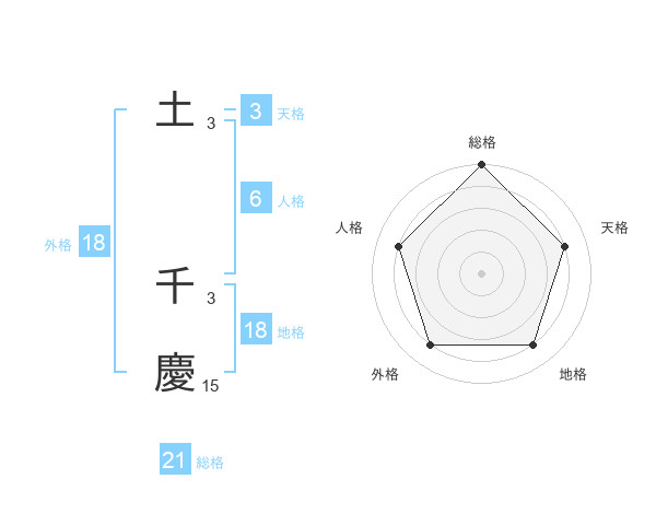 土 千慶さんの総格は21画の5点!