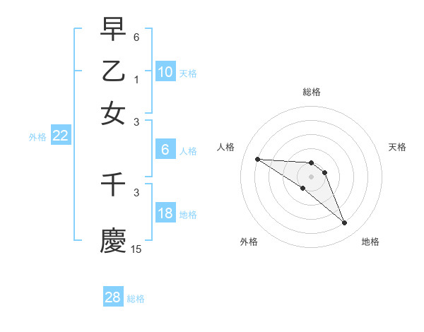 早乙女 千慶さんの総格は28画の1点
