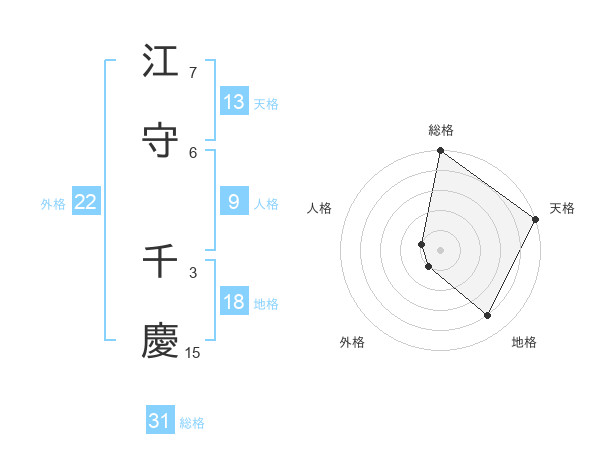 江守 千慶さんの総格は31画の5点!