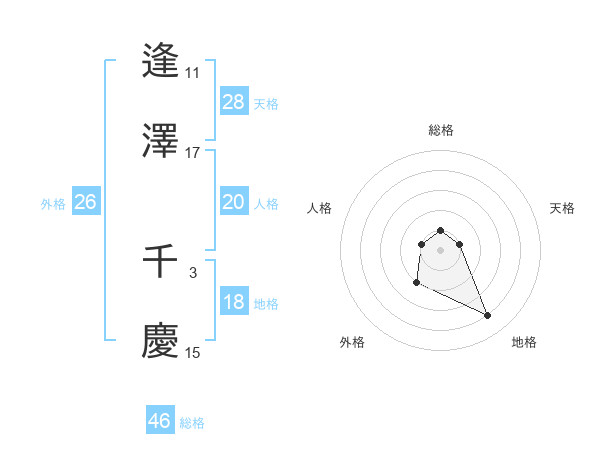 逢澤 千慶さんを姓名の画数から五運を鑑定
