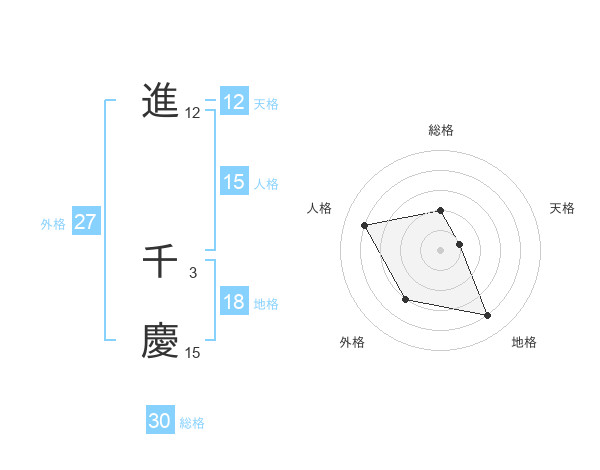 進 千慶さんの総格は30画の2点!