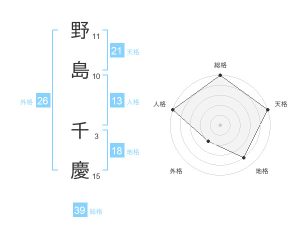 占い結果は姓名判断である以上、良い場合も悪い場合もありますが、決してお名前を誹謗中傷するものでなく、画数の自動計算によって得られたものです。また、本サイトの検索によって得られた鑑定結果で、第三者を誹謗中傷したり名誉を棄損するような行為を禁じます。