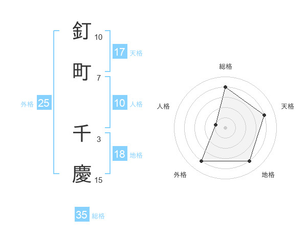釘町 千慶さんを姓名の画数から五運を鑑定
