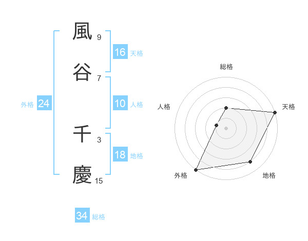 風谷 千慶さんの天格は16画の5点!