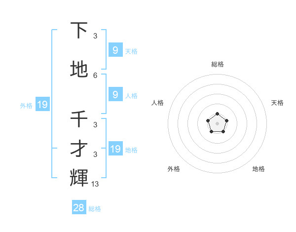 下地 千才輝さんを姓名の画数から五運を鑑定