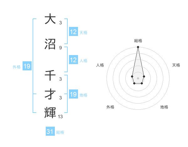 大沼 千才輝さんを姓名の画数から五運を鑑定