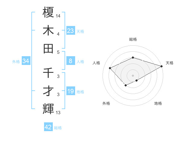 榎木田 千才輝さんの天格は23画の5点