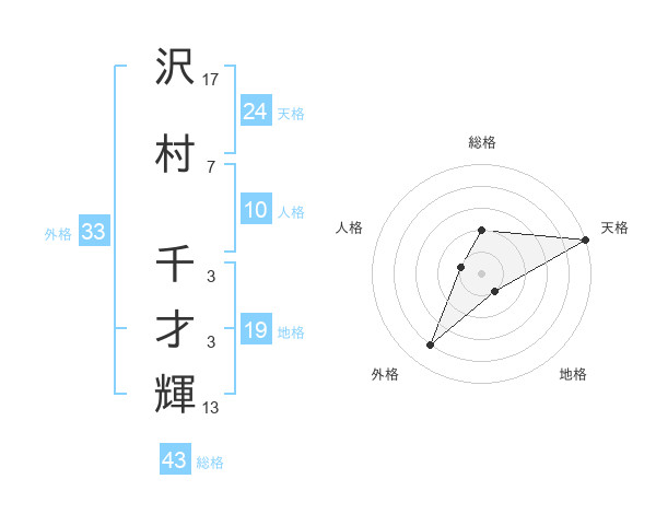 沢村 千才輝さんを姓名の画数から五運を鑑定
