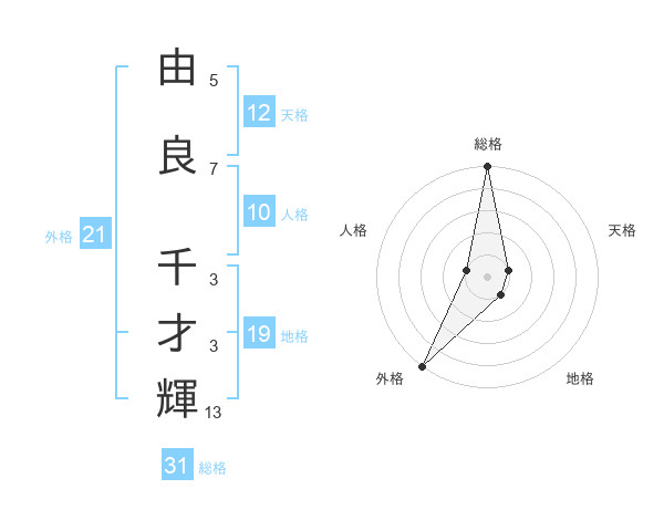由良 千才輝さんを姓名の画数から五運を鑑定