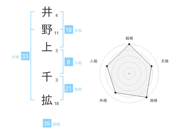 井野上 千拡さんを姓名の画数から五運を鑑定