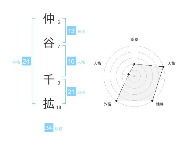 仲谷 千拡さんの総格は34画の2点!