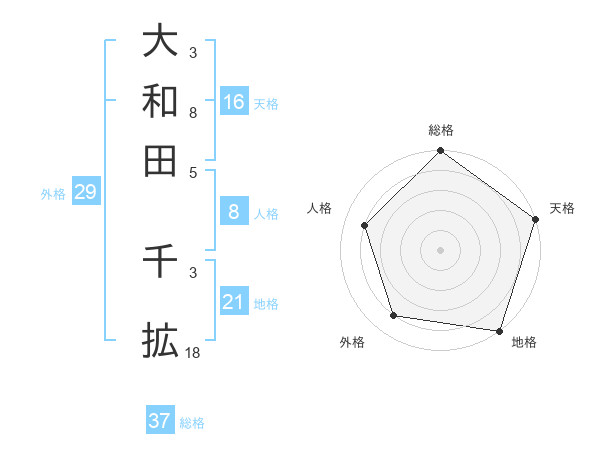 大和田 千拡さんの総格は37画の5点!