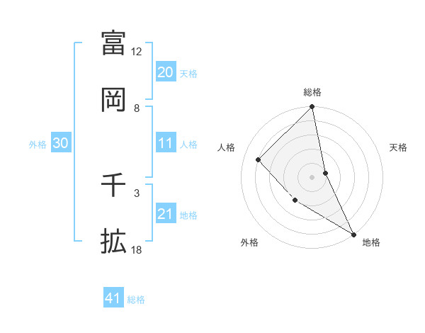 富岡 千拡さんを姓名の画数から五運を鑑定