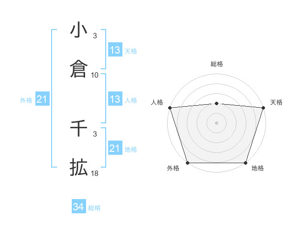 小倉 千拡さんを姓名の画数から五運を鑑定