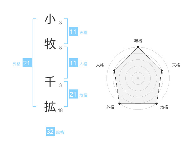 小牧 千拡さんの外格は21画の5点!