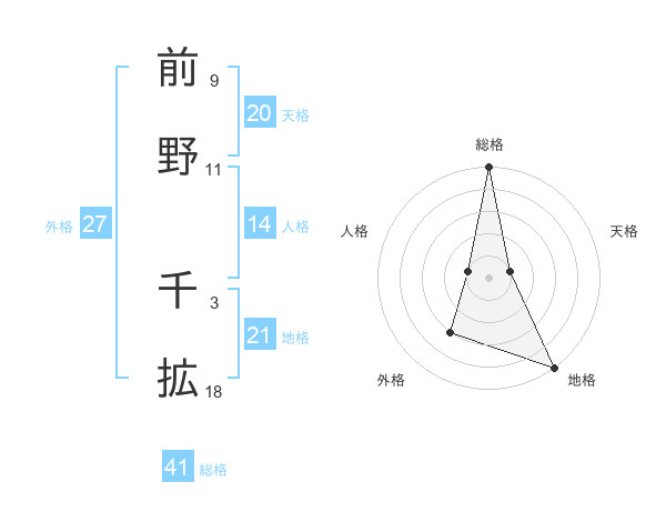 前野 千拡さんの総格は41画の5点!