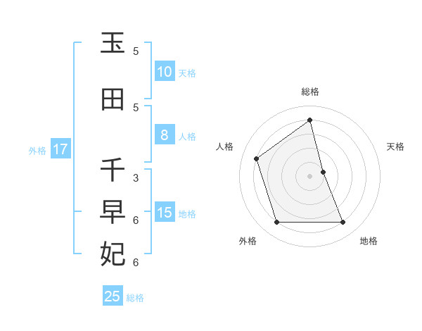 玉田 千早妃さんの総格は25画の4点!