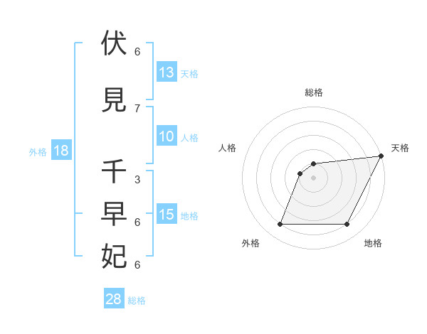 伏見 千早妃さんの総格は28画の1点!