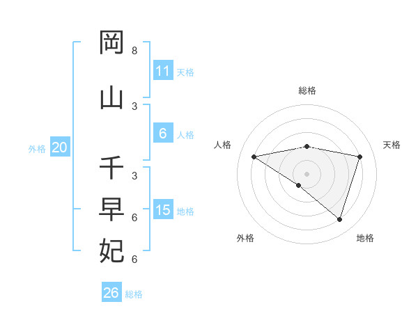 岡山 千早妃さんの総格は26画の2点!