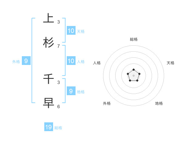 上杉 千早さんの総格は19画の1点!
