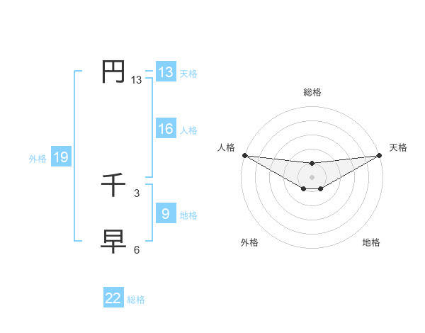 円 千早さんの総格は22画の1点!