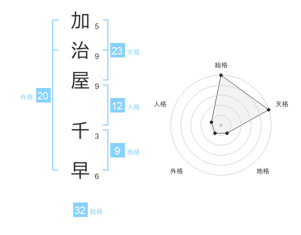 加治屋 千早さんの総格は32画の5点
