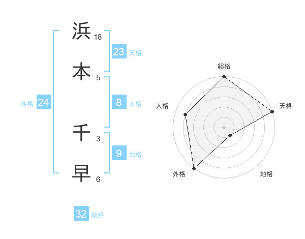 浜本 千早さんの総格は32画の5点