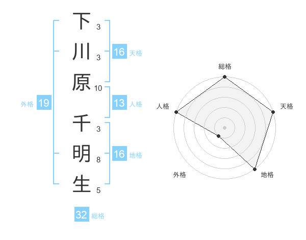 下川原 千明生さんの総格は32画の5点!