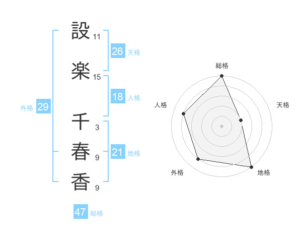 設楽 千春香さんを姓名の画数から五運を鑑定