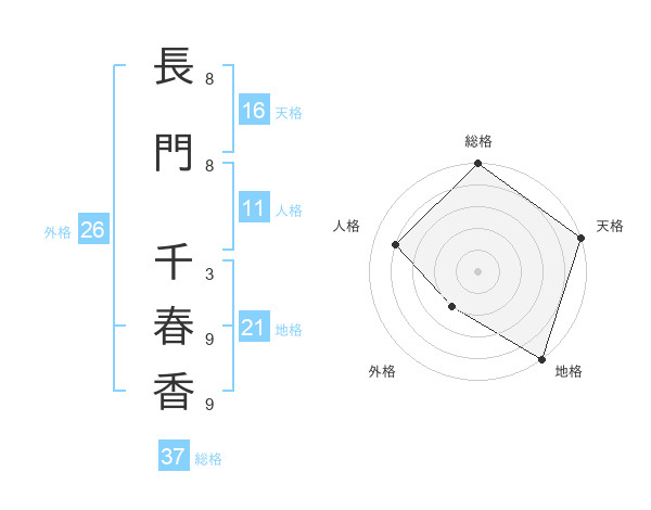 長門 千春香さんの天格は16画の5点!