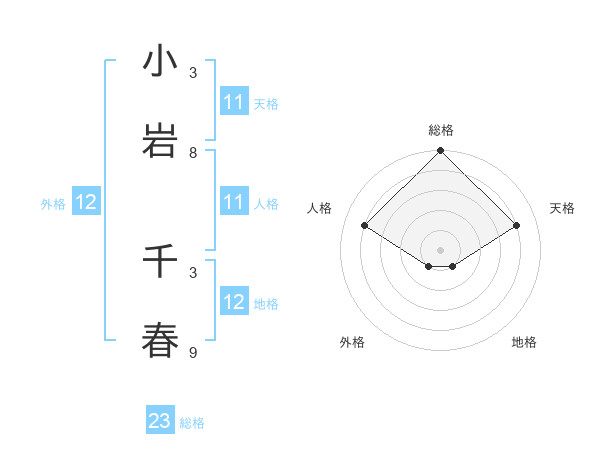 小岩 千春さんの総格は23画の5点!
