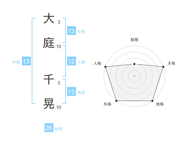 大庭 千晃さんを姓名の画数から五運を鑑定