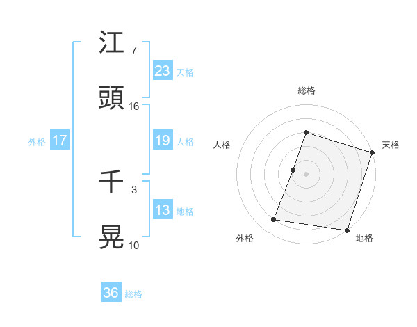 江頭 千晃さんを姓名の画数から五運を鑑定