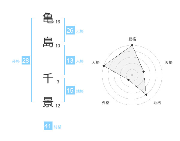 亀島 千景さんの総格は41画の5点!