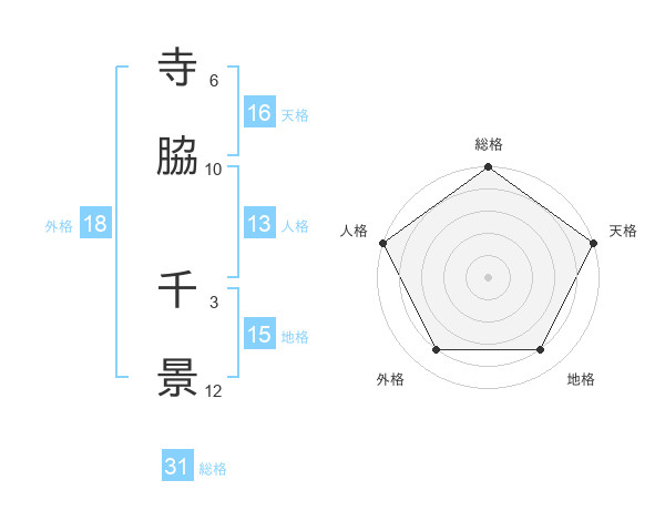 寺脇 千景さんを姓名の画数から五運を鑑定