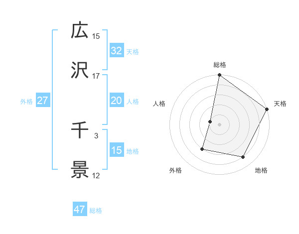 広沢 千景さんの総格は47画の5点!