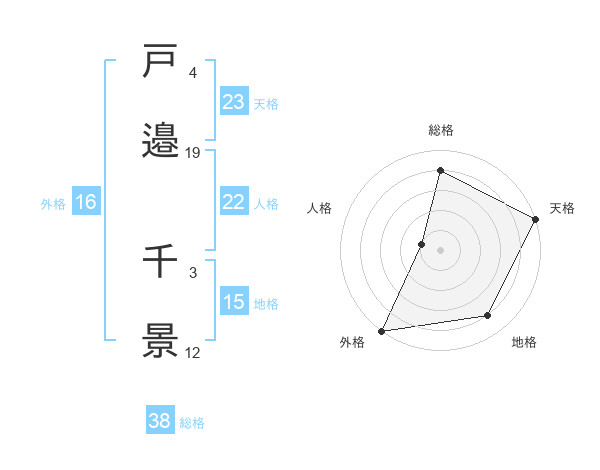 戸邉 千景さんを姓名の画数から五運を鑑定