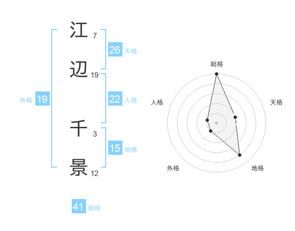江辺 千景さんの外格は19画の1点!