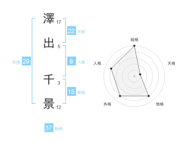 澤出 千景さんの総格は37画の5点!
