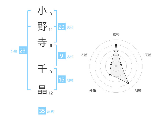 小野寺 千晶さんの総格は35画の4点!