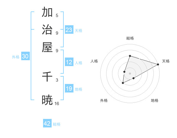 加治屋 千暁さんを姓名の画数から五運を鑑定