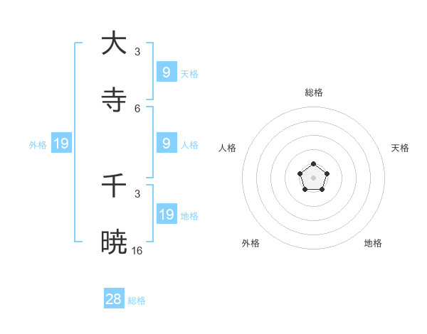 大寺 千暁さんを姓名の画数から五運を鑑定