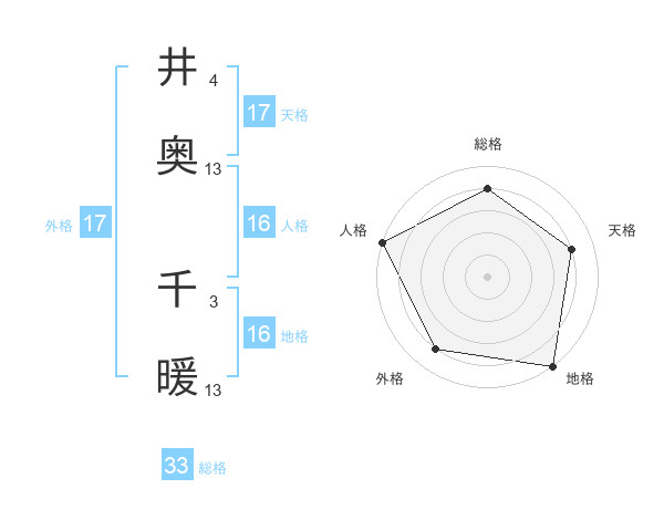 井奥 千暖さんを姓名の画数から五運を鑑定