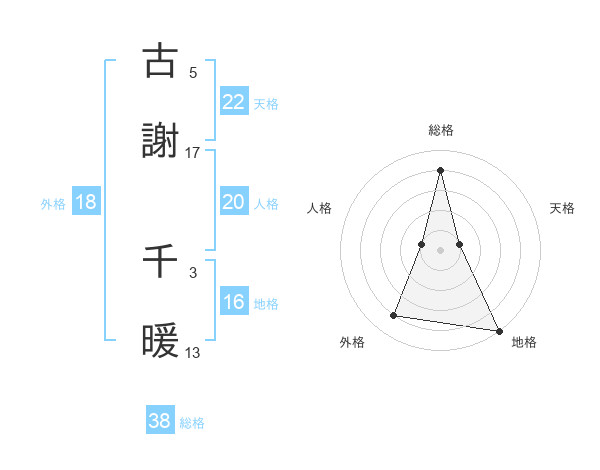 古謝 千暖さんを姓名の画数から五運を鑑定