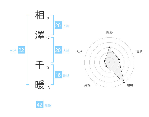 相澤 千暖さんを姓名の画数から五運を鑑定